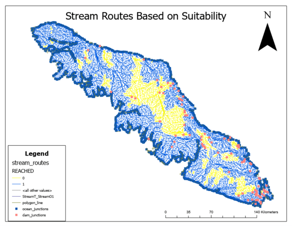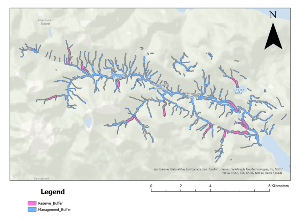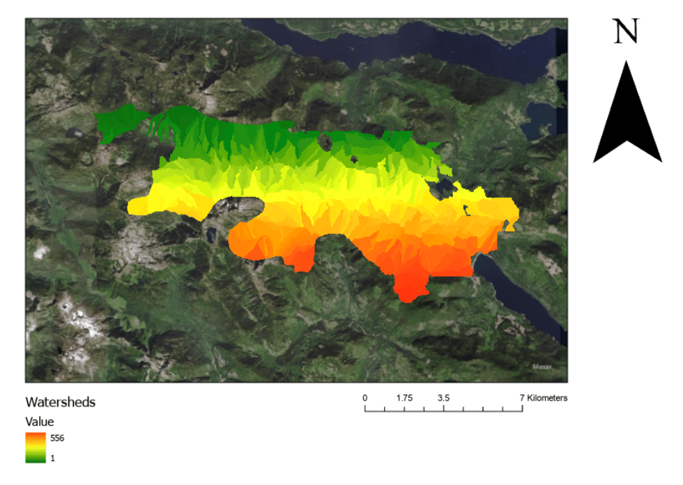 Canopy Height Model of Plot 1 using dalponte2016 algorithm with treetops overlaid.A map delineating ideal stream routes based on suitability for Salmon on Vancouver Island. The yellow lines are deemed unsuitable, and the blue lines are deemed suitable.Delineates the reach of the chosen conservation area showing streams from the ocean with dams as barriers.The Slope of Rose Swanson Mountain is visualized using three classes. Slopes of 1% – 26% were classified as gentle slopes. Slopes of 26.1% – 53% were classified as moderate slopes. Slopes of 53.1% – 79% were classified as steep slopes. Areas with higher slopes that intersect with hydrological features should not be considered for cut blocks.Flow Direction Model (left) and Digital Elevation Model (DEM) (right) of Rose Swanson Mountain. Flow Direction Model delineates which direction water travels across the landscape and the Digital Elevation Model uses 8 classes to identify elevation across the terrain.Illustrates stream order across Rose Swanson Mountain. Pink represents first-order streams, which are the smallest and formed by the convergence of intermittent, transient flow paths. Purple indicates second-order streams, formed by the confluence of two first-order streams. Orange represents third-order streams, which are larger and formed by the convergence of two second-order streams.Projected Topographic Wetness Index (TWI), absence of water is symbolized in blue, wet terrain is symbolized in white. Water bodies, lakes, streams, and ponds, were delineated from dense white patches that indicated a strong water accumulation capability, symbolized in pink.The merged solid water body and stream network based on the flow accumulation process, delineating natural pathways of water and drainage features across the landscape of Rose Swanson Mountain.Stream and lake network of the Rose Swanson recreation area with a 20-metre buffer. The buffer (pink) identifies Hydrologically Sensitive Areas (HSAs) that should be considered when planning cut blocks on Rose Swanson Mountain.The impact of changing Random Forest parameters on the 2nd crown closure model performance was observed through variations in model accuracy, as indicated by R-squared values, mean squared error (MSE), and the variable importance rankings. Parameters such as the number of trees, maximum tree depth, and minimum samples per leaf, should be optimized to improve model performance. Increasing the number of trees generally leads to better model accuracy, as it allows for more comprehensive exploration of the feature space and reduces the risk of overfitting. Similarly, adjusting the maximum tree depth controls the complexity of the model and influences its ability to capture underlying patterns in the data. A higher maximum tree depth may improve model accuracy but increases the risk of overfitting, while a lower value may result in underfitting. Moreover, optimizing the minimum samples per leaf parameter helps balance the trade-off between bias and variance in the model, ensuring robust predictions while avoiding excessive partitioning of the feature space.A plot displaying NDVI of the five averaged spectra (Arbutus, Dead Maple, Fir, Rock, Soil).Plots 1, 2, 3 and 4 segmented with the li2012 algorithm and coloured by treeID.2D Canopy Height Model (CHM) of Alex Fraser Research Forest, British Columbia, Canada.Canopy Height Models of Plot 2 at 0.5m, 2m, 4m and 10m using dalponte2016 algorithm. Displayed with treetops overlaid.3D Canopy Height Model plot (left plot 2D, right plot 3D).2D plot of normalized LiDAR tiles over Malcolm Knapp Research Forest.Figure of display with predicted Class colors visualized over Malcolm Knapp Research Forest.Initial segmentation objects over a composite image of Malcolm Knapp Research Forest.To compare and contrast the influence of different NDVI statistics on predicting vegetation health in Vancouver, I analyzed a set of independent variables encompassing socio-economic and demographic factors. These variables, including household income, education level, population density, and immigration rate, were assessed for their potential impact on NDVI values. Each NDVI statistic, such as total household income, prevalence of low income, and average household size, was individually examined in regression models to determine its efficacy in explaining variations in NDVI. By evaluating coefficients, standard errors, and goodness-of-fit measures across the models, I aimed to identify which NDVI statistic yielded the best model fit. This comprehensive analysis provides insights into the underlying factors shaping green space distribution and vegetation health, informing discussions on environmental equity and sustainable urban development strategies.Map of the watersheds in the Nahmint Region of Vancouver Island, British Columbia.Map showing example stream network and suggested Riparian Management Areas.